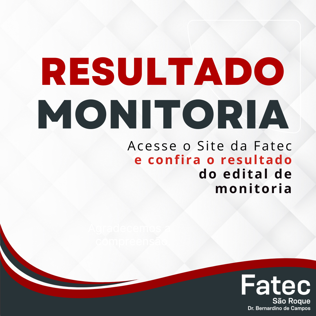 A Fatec São Roque divulga o resultado oficial do processo seletivo de monitoria referente ao Edital 04/2025. Os alunos selecionados devem, obrigatoriamente, procurar a coordenação de curso e o docente responsável pela disciplina na qual atuarão como monitores. É fundamental que esse contato seja feito logo no início das aulas para que recebam todas as orientações necessárias sobre as atividades e responsabilidades da monitoria.