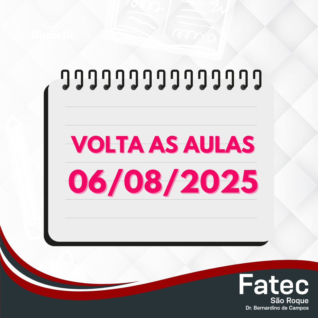 É com grande alegria que anunciamos o retorno das aulas na Fatec São Roque no dia 06 de agosto de 2025, marcando o início do segundo semestre letivo. Este retorno se aplica tanto aos alunos ingressantes, que estão iniciando sua trajetória acadêmica, quanto aos veteranos, que seguem avançando em sua formação.