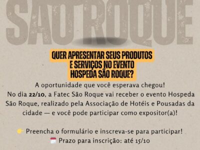 No dia 19 de agosto, a Fatec São Roque promoveu o evento “Up Grade na Fatec São Roque”, que contou com a participação de importantes representantes do setor de Hospitalidade da região. Estiveram presentes as vinícolas Alma Galiza e Vinhos Camguera, a Associação Hospeda SR, o Roteiro do Vinho e a Pousada Aconchego do Campo.